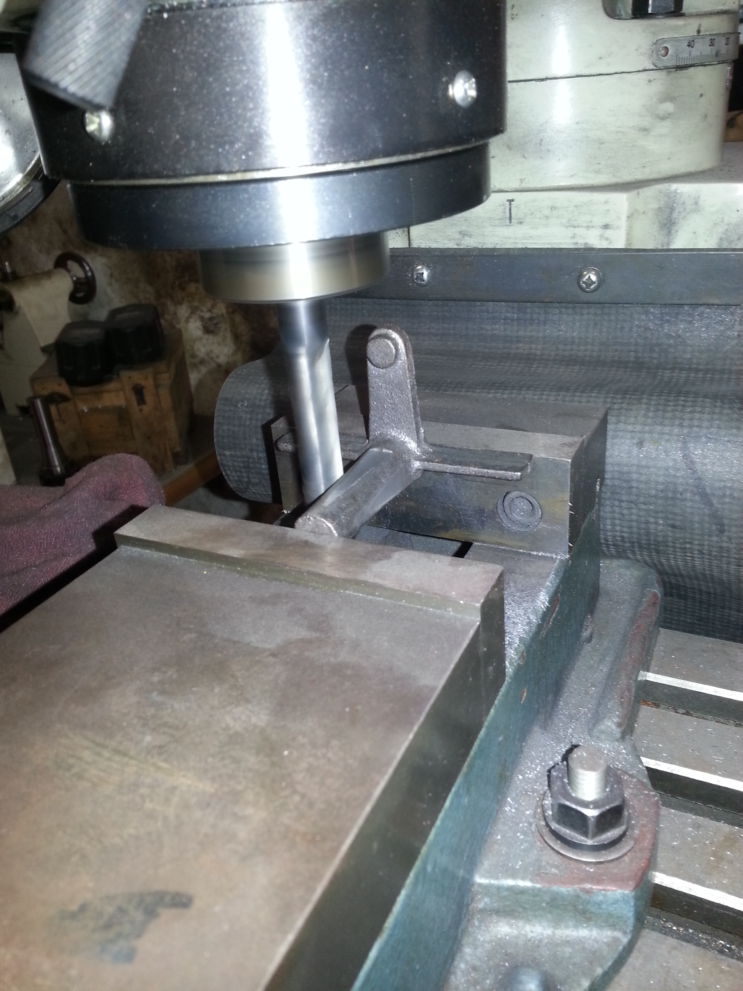 For the spark rocker I needed some place to start. I filed the casting numbers down until they were at the same plane as the outboard arms. Then I set it up in the mill eyeballing everything level. This give me a starting point. I milled 3 flats on the shaft for the lathe's 4 jaw chuck. I flipped it over and milled a fourth flat. Size doesn't mean anything it's just flat surfaces to hold. I set it up in the lathe and indicated to the round part. It's a casting so it's not going to be that critical it's a starting point. I then took a skim cut across the arms then faced the inside to length, then drilled and reamed it. Just for kicks I also turned the outside of the arms so they are centered and square. In the 3rd pic I set a parallel on the faced section to square it that way and eyeballed the arms level. This gave me the hold I needed to mill the pads for the 3/16 hole. I also took skim cuts at the ends of the arms to establish the same arms level later. I wasn't sure if I would need it but I'm VERY glad I did. The 4th and 5th pics are having the part clamped using those flats and the face cut I made on the arms when I had it in the lathe. Another example of taking an opportunity to make a location cut any time you can since you never know when you'll need it! The last pic is again using those flats cut earlier to rest it on parallels to cut the recess and drill the holes.