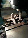 Here are the eccentric straps. I cut them apart then cut them on the split. I filed the joins a bit to get it close then milled a small flat on the back. It establishes a parallel to the joint. I flip it back over and rest on that flat to cut the joint. Once the joint is cleaned up on both, flip them back over and cut the backs again both at the same time so when the parts are put together, the joint is exactly in the center between the flats. Then I bored the hole on the mill. The green plate on the lathe is a jig to clamp the part to so I could cut the groove inside the bore. It's more reliable than using the mill. The last 2 pics are using an indexing head to locate and drill the oil and rod holes.