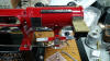 It's been a while since I posted any updates. I spent the past winter doing the finish polishing, plating and painting. I actually ended up painting several parts a few times. I painted the main body and a few other parts with color then clear using Krylon. The clear was so brittle that as soon as I tightened a nut against it, the clear shattered like glass. So I striped and repainted with Rustoleum. That paint is much less brittle. I also plated most of the hardware with nickel plate. I didn't get all of the parts done so I'll have to setup the plating tanks again. The photos here are with a lot of the parts assembled. The picture on the rigth end has the cooling pump. I tried to build a centrifugal pump but to build one to a reasonable scale just didn't work to move water. I resorted to a positive displacement pump instead. It's my own design and hopefully works. It's belt driven by a large O-ring from the main shaft.